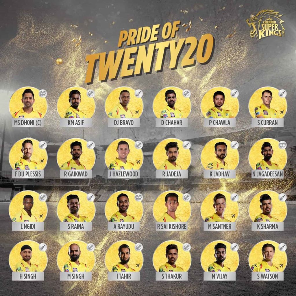 Batsmen: Shane Watson, Faf du plessis, Murali Vijay, Ambati Rayudu(wk), Suresh raina, Kedar Jadav, Ruturaj Gaiwkad, Narayan Jegadeeshan(wk)